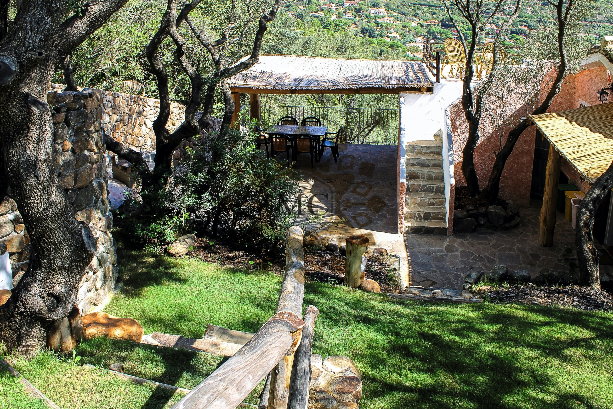 All’esterno ci sono diverse aree in cui rilassarsi: l’area della piscina di fronte alla casa, l’ampio giardino verde, la zona pranzo con tipico barbecue in pietra, e una romantica terrazza nella parte superiore della villa, da cui si gode di una vista meravigliosa sulla baia.